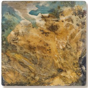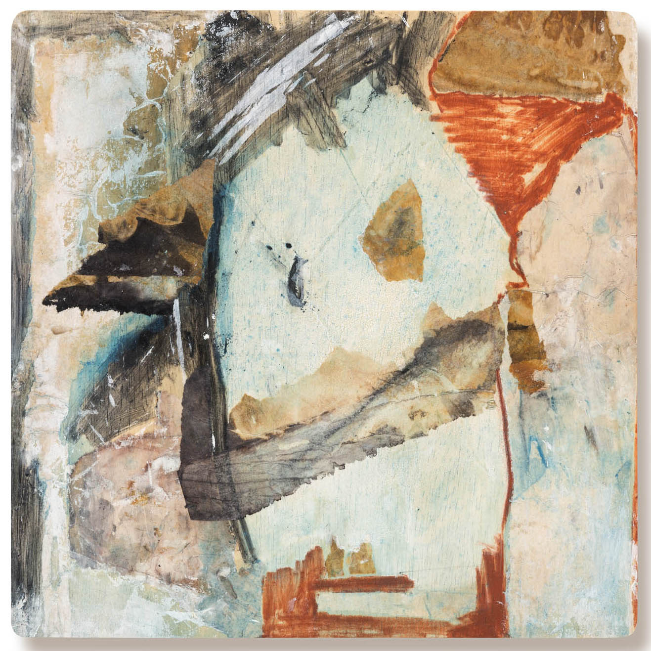 Obra realizada sobre madera con tinta ferrotánica, sulfato de hierro, tanino, pigmentos, lápiz, carboncillo, papel de seda y fijador.Mixed media on wood