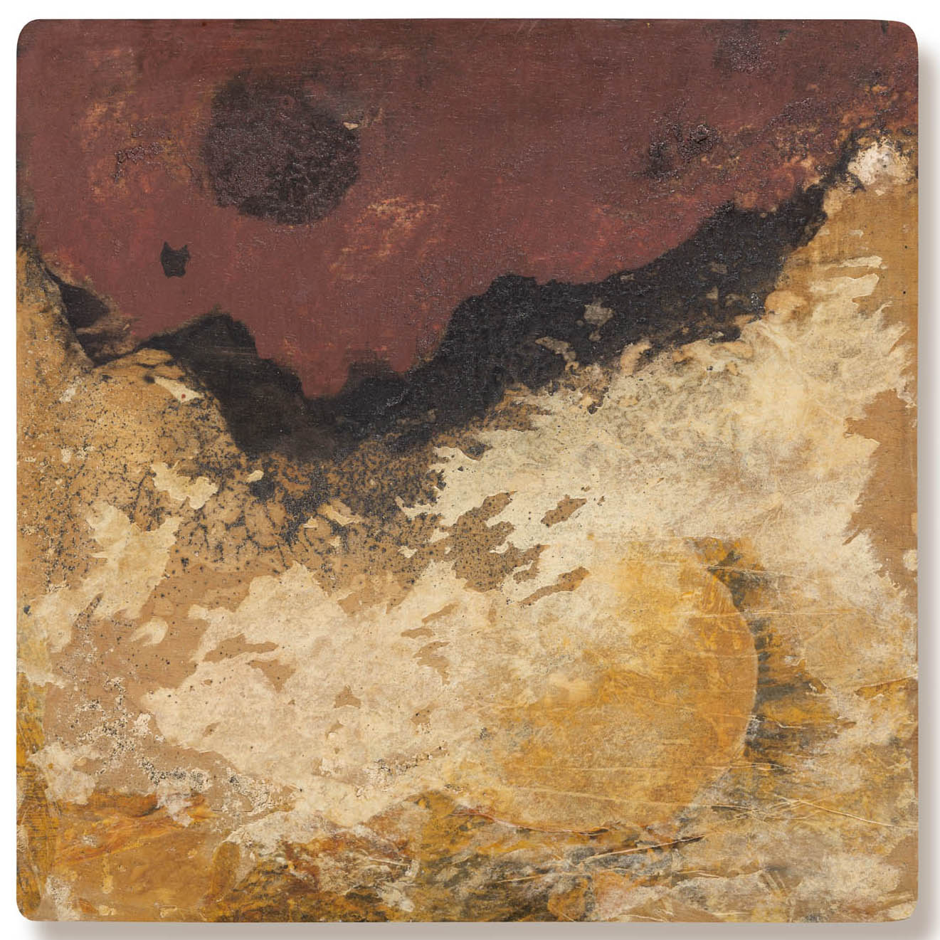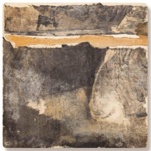 Obra realizada sobre madera con tinta ferrotánica, sulfato de hierro, tanino, pigmentos, lápiz, carboncillo, papel de seda y fijador.Mixed media on wood