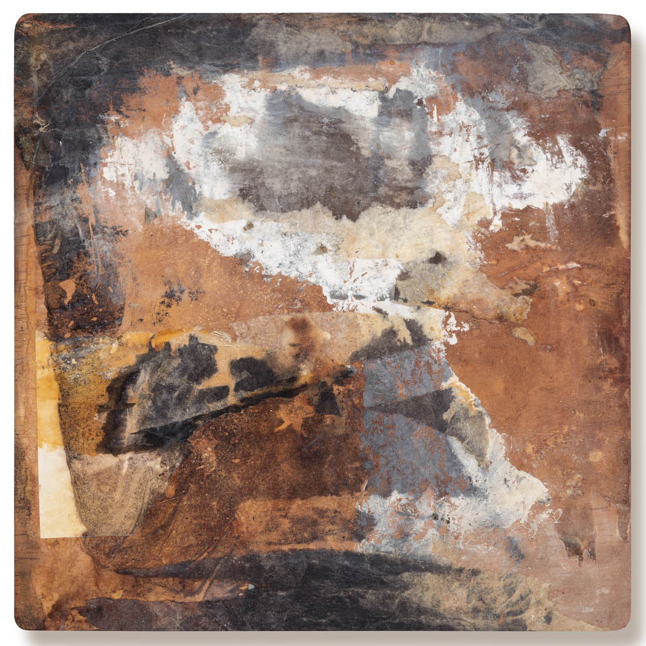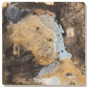 Obra realizada sobre madera con tinta ferrotánica, sulfato de hierro, tanino, pigmentos, lápiz, carboncillo, papel de seda y fijador.Mixed media on wood