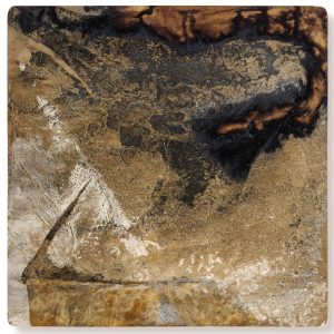 Obra realizada sobre madera con tinta ferrotánica, sulfato de hierro, tanino, pigmentos, lápiz, carboncillo, papel de seda y fijador.Mixed media on wood