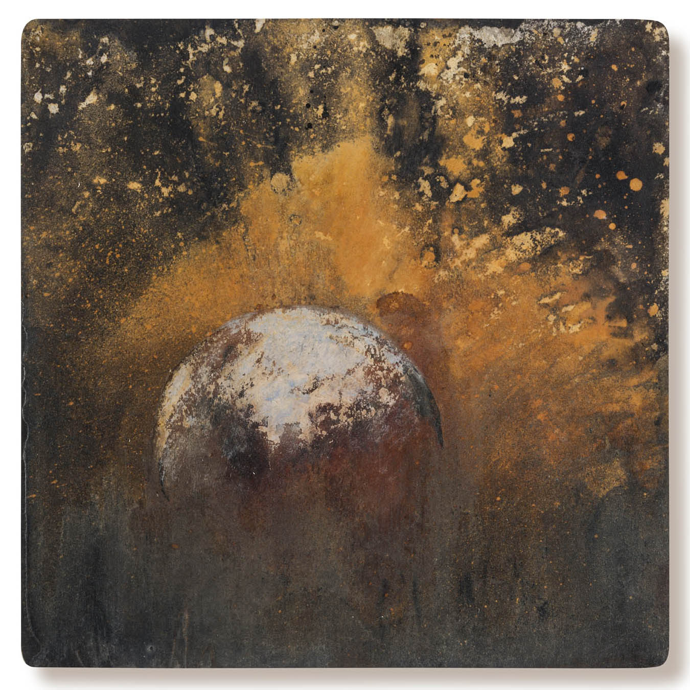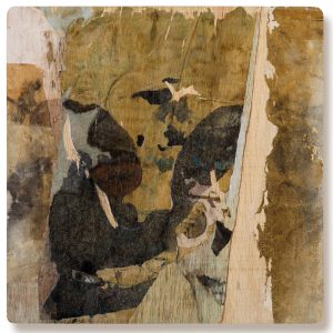 Obra realizada sobre madera con tinta ferrotánica, sulfato de hierro, tanino, pigmentos, lápiz, carboncillo, papel de seda y fijador.Mixed media on wood
