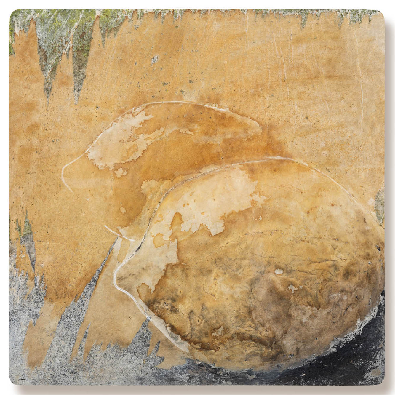 Photography and works made on wood and canvas using a mixed media technique, including paper and ferrotannin ink, as well as pigments, charcoal, and acrylic paint.