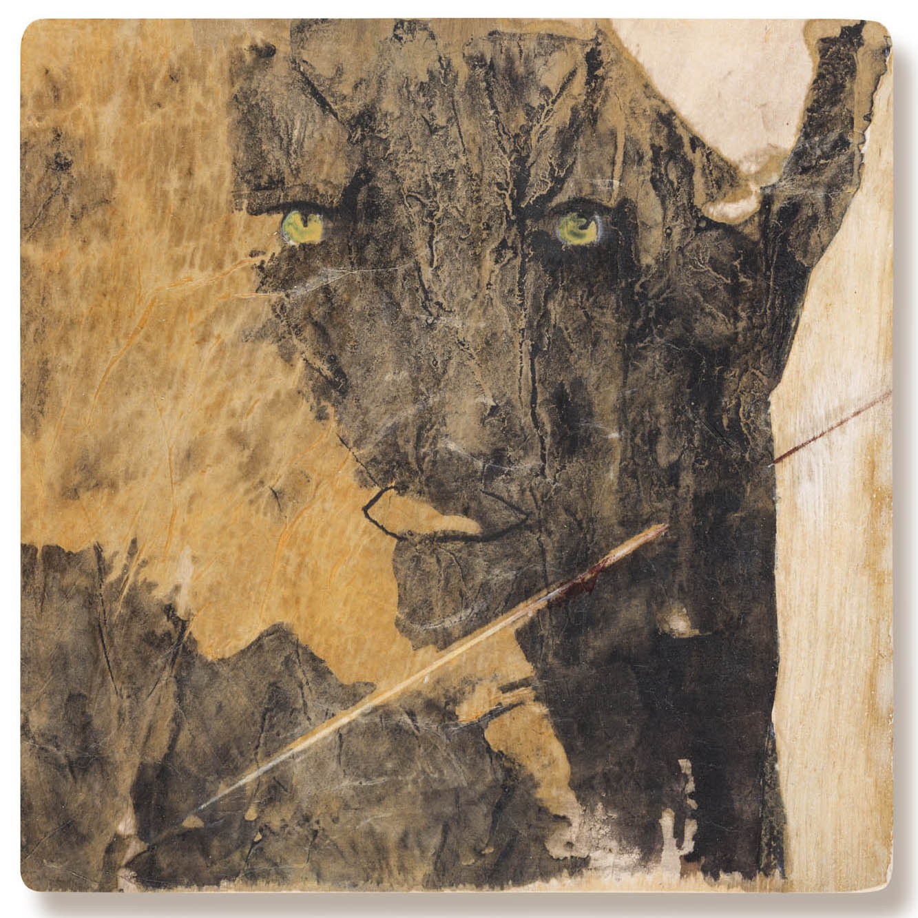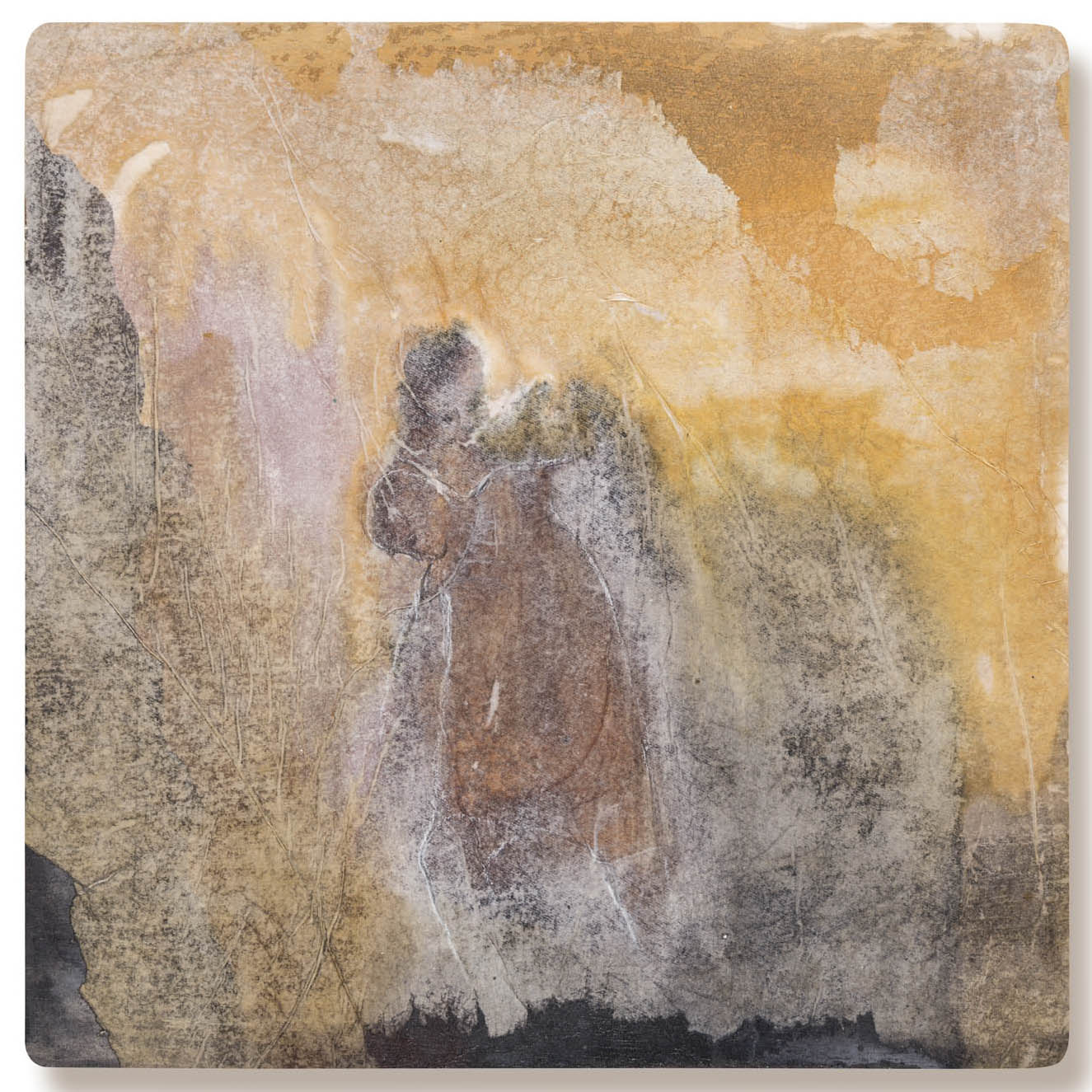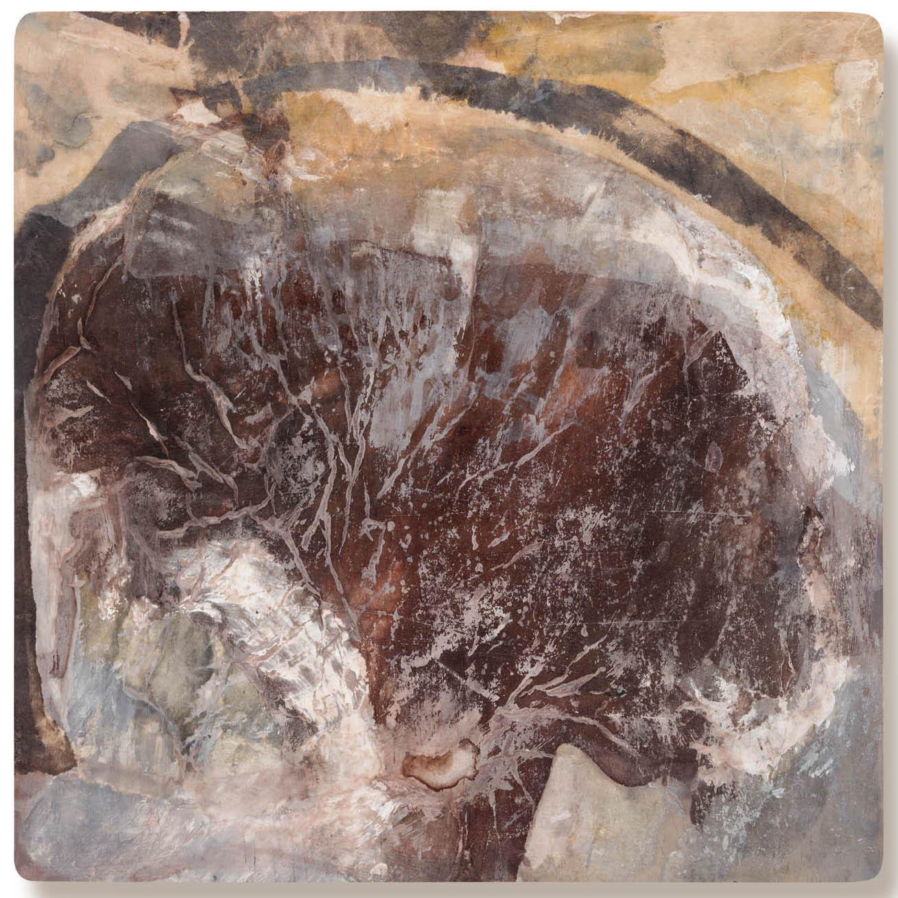 Work done on wood with ferrotan ink, iron sulfate, tannin, pigments, pencil, charcoal, silk paper and fixative.